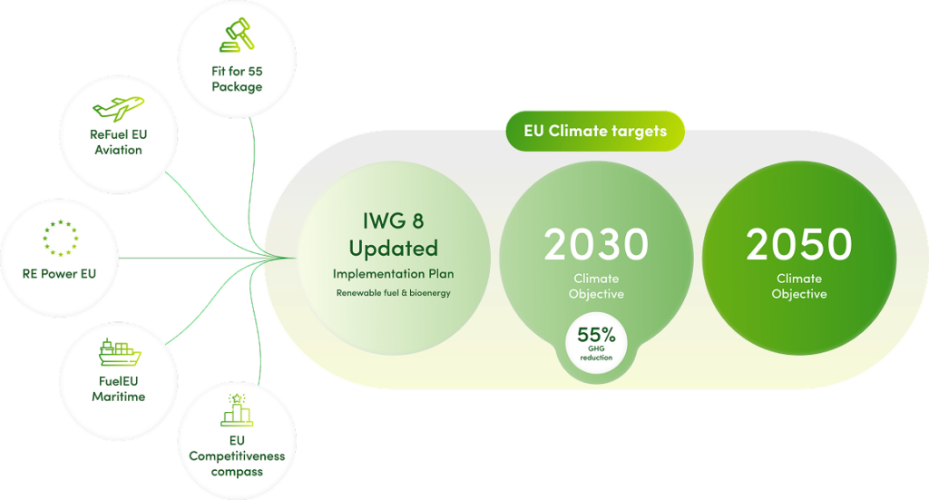 - Ensure alignment with EU policies (Fit for 55, REPowerEU, ReFuelEU Aviation, FuelEU Maritime)